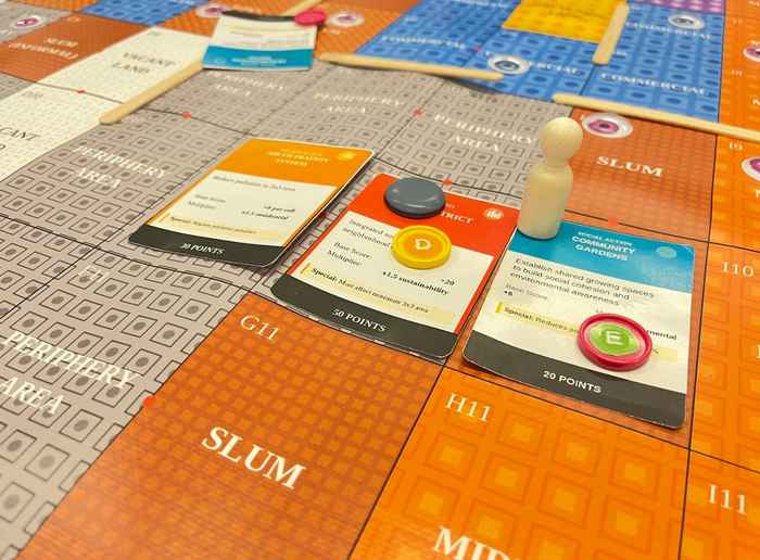 At the core of the session was a role-based serious game in which participants collaboratively addressed urban environmental challenges. The game itself was complex and required careful navigation of different roles, interests, and constraints. Through elements of roleplay, participants were asked to step into the perspectives of various urban actors and engage in processes of negotiation and collective decision-making.