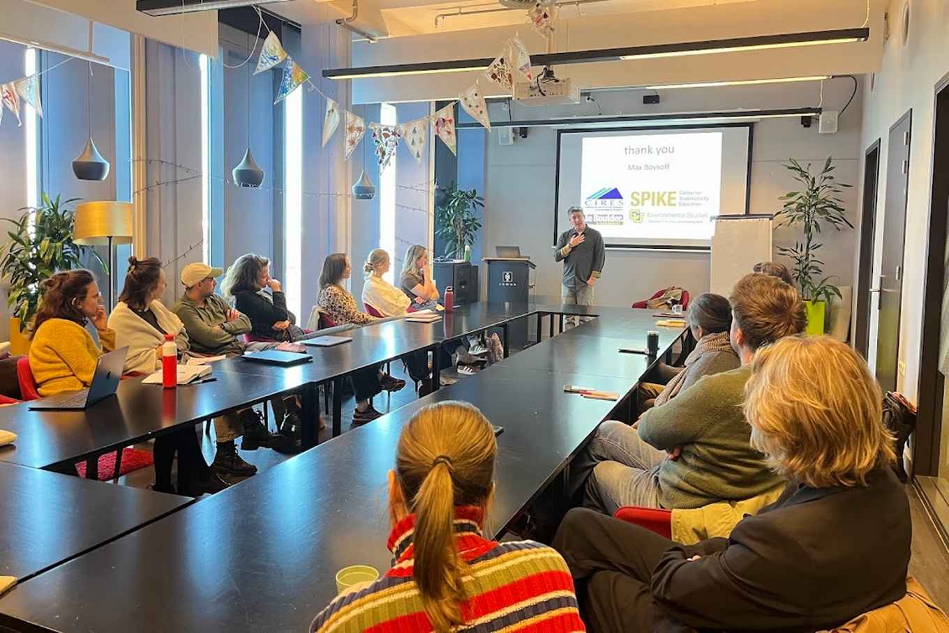 Importantly, Boykoff did not shy away from the tensions involved. The risk of trivialising the climate crisis is real, and the use of humour requires careful consideration. However, many practitioners see this tension as productive rather than limiting. Comedy can act as a site of subversion, where difficult emotions such as fear, frustration, or fatigue can be processed collectively. It offers a way to overcome isolation and to reframe climate engagement as something shared rather than individual. The strong response from the audience reflected the resonance of these ideas. The lecture was not only informative but also genuinely inspiring, prompting participants to rethink their own approaches to communication, research, and engagement. Discussions continued well beyond the session, with many expressing interests in experimenting with creative formats themselves.